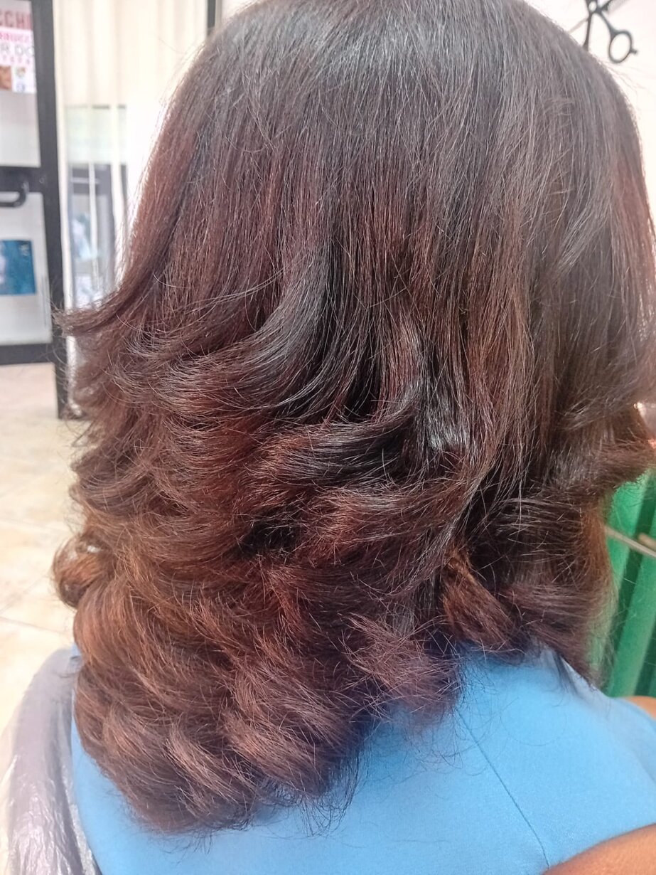 Shampoo, piega, taglio, colori, trattamenti viso testa e acconciature.